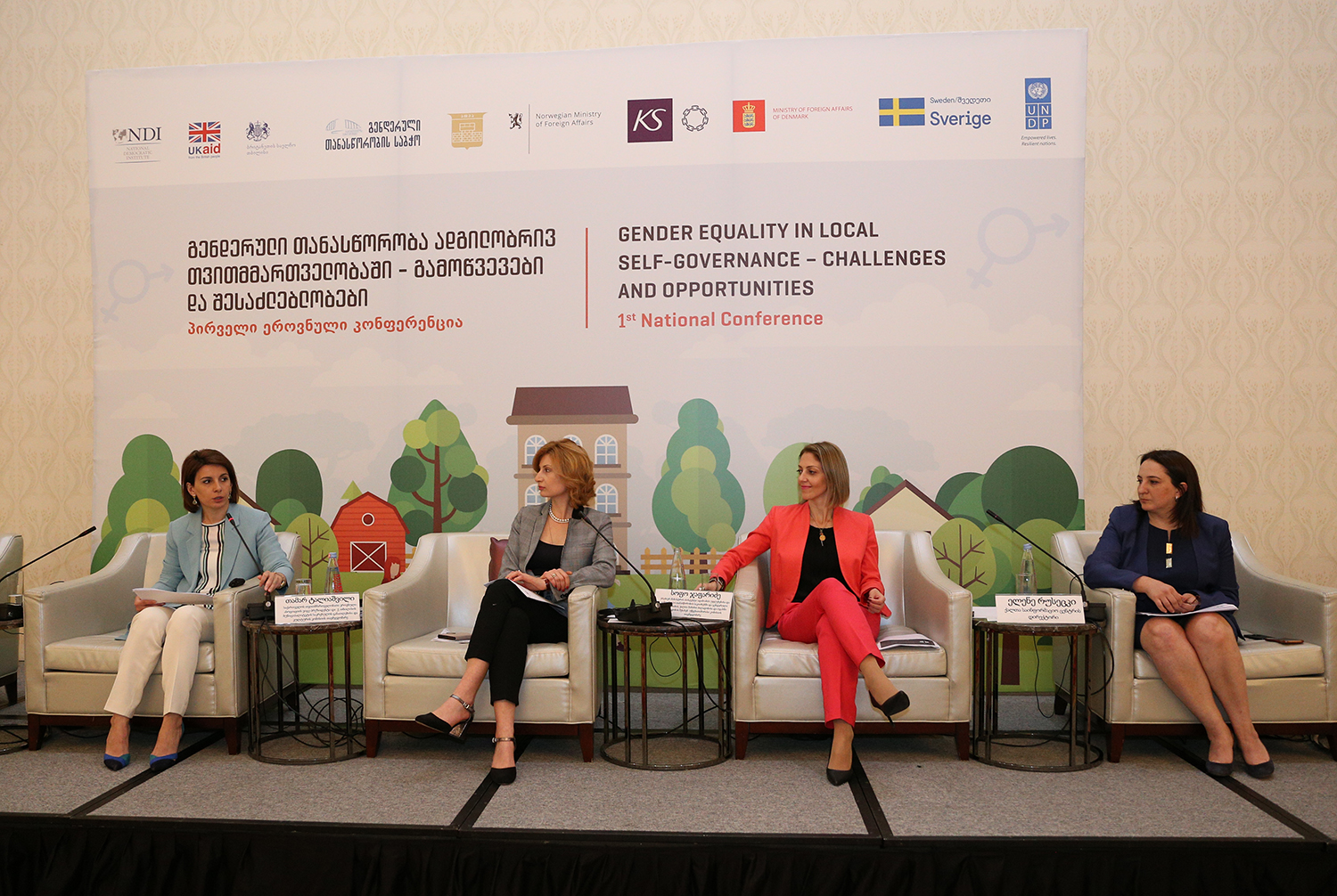 დღესვე, კონფერენციაზე, რომელიც სასტუმროში „ჰოთელს & პრეფერენს ჰუალინგ თბილისი“ გაიმართა, მოწვეული სტუმრების წინაშე პრეზენტაციებით წარსდგნენ ზუგდიდის, ნინოწმინდის, ოზურგეთის მერები და ახმეტის საკრებულოს თავმჯდომარე, რომლებმაც თვითმმართველობების წარმომადგენლებს შესაბამის მუნიციპალიტეტებში გენდერული თანასწორობის მიღწევის მიმართულებით დაგროვილი გამოცდილება გაუზიარეს.