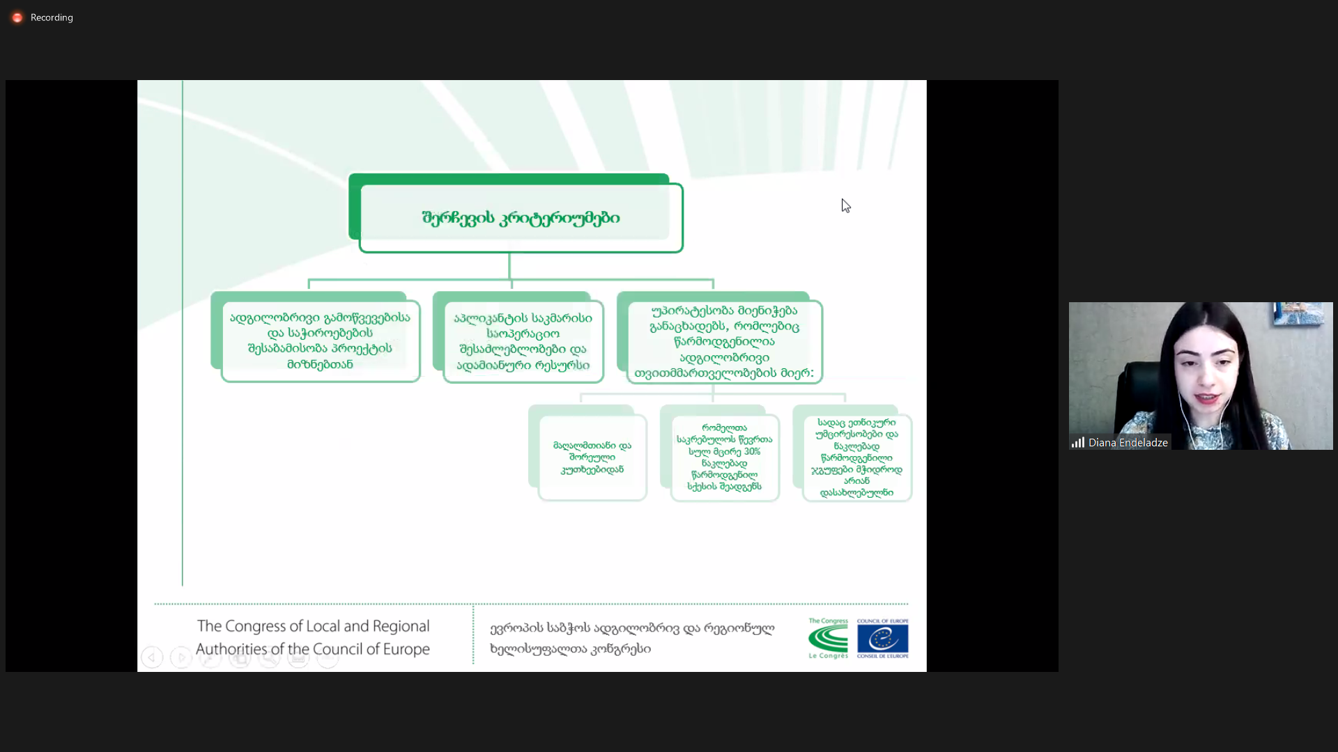 ონლაინ შეხვედრა, რომელსაც ნათია ღვინაშვილი უწევდა მოდერაციას, დავით მელუამ, კონგრესის თანამშრომლობისა და საგარეო ურთიერთობათა სამმართველოს უფროსთან - მარიტე მორასთან ერთად გახსნა.