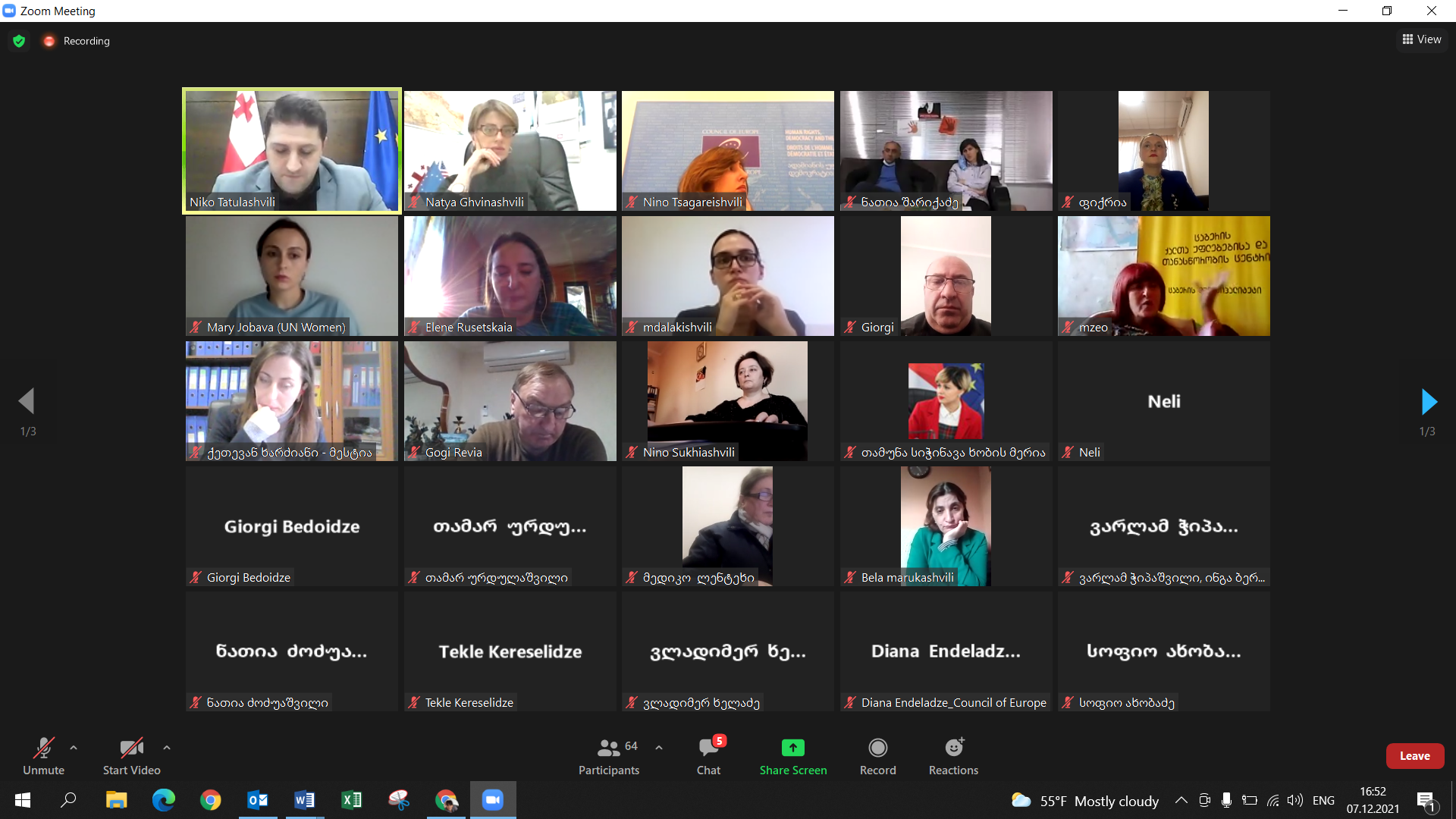 ონლაინ ღონისძიება, რომელიც ადამიანის უფლებებისა და გენდერული თანასწორობის მიმართულებით, ცენტრალურ და ადგილობრივ ხელისუფლებებს შორის კოორდინაციის გაძლიერების მიზნით მოეწყო, ადამიანის უფლებების დაცვის საკითხებში საქართველოს პრემიერ მინისტრის მრჩეველი უძღვებოდა.