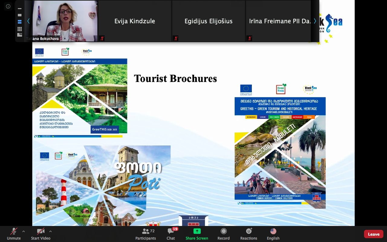 ტატიანა ბოკუჩავამ პროექტის - „მწვანე ტურიზმი და ისტორიული მემკვიდრეობა - შავი ზღვის აუზის განვითარების საფუძვლები“ პრეზენტაცია ქობულეთის მუნიციპალიტეტის პოპულარიზაციისთვის შექმნილი მოკლე ვიდეო-რგოლით, სახელწოდებით -"შეხვედრამდე" დაიწყო და დეტალურად აღწერა პროექტის სამიზნე 6 ქვეყნის მიერ 2018 წლიდან დღემდე განხორციელებული ღონისძიებები.