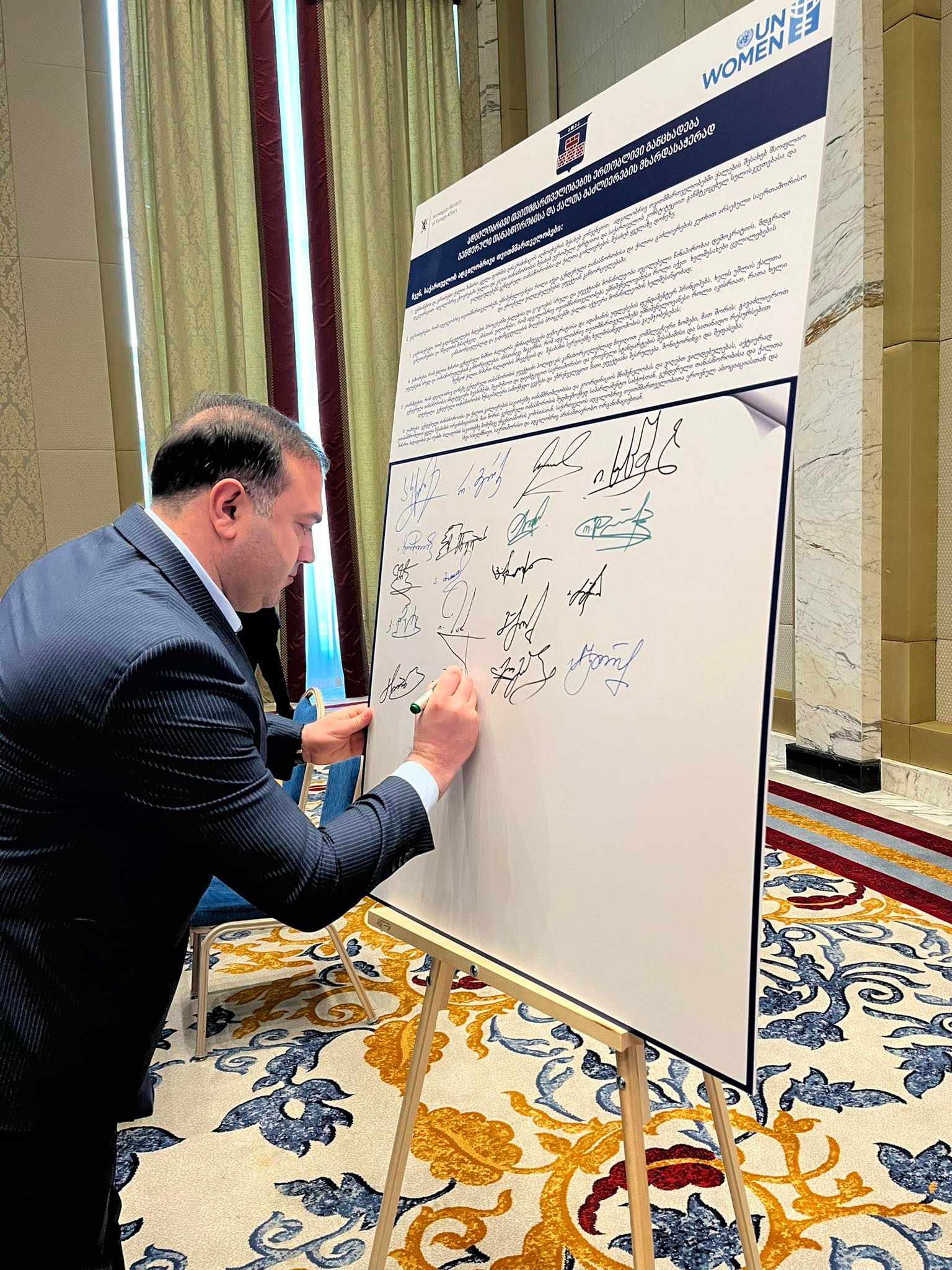 აღსანიშნავია, რომ დოკუმენტზე ხელმოწერის ცერემონიალი, საქართველოს ადგილობრივ თვითმმართველობათა ეროვნული ასოციაციის (NALAG), ორგანიზებითა და გაეროს ქალთა ორგანიზაციის მხარდაჭერით გამართული ფართომასშტაბიანი ეროვნული კონფერენციის - ,,გენდერული თანასწორობის პოლიტიკა ადგილობრივ დონეზე: ძირითადი გამოწვევები და სამოქმედო ნაბიჯები’’ ფარგლებში გაიმართა, რომელიც გენდერული პოლიტიკის მიმართულებით განხორციელებული და დაგეგმილი ღონისძიებების, ასევე, არსებული გამოწვევებისა და სამოქმედო ნაბიჯების შესახებ მსჯელობას დაეთმო.