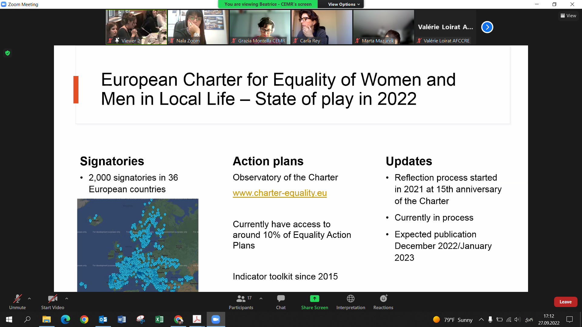 ნათია ღვინაშვილმა, მიმართვისას, მოკლედ მიმოიხილა ათეას მიერ წევრ მუნიციპალიტეტებში განხორციელებული ღონისძიებები და ხაზი გაუსვა გენდერული თანასწორობის სამოქმედო გეგმების შემუშავების პროცესს, რომელიც მისივე განცხადებით, თანასწორობის ქარტიის პრინციპებთანაა ჰარმონიზებული და სრულად პასუხობს ამავე ქარტიით განსაზღვრულ დებულებებს.