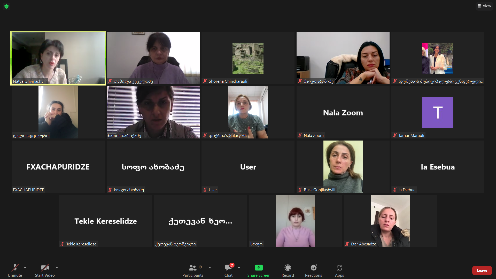 ქუთაისის, ჭიათურის, ზესტაფონის, სამტრედიისა და ბაღდათის, ასევე მცხეთის, დუშეთის, მარნეულის, თიანეთისა და თეთრიწყაროს მუნიციპალიტეტების წარმომადგენლების ჩართულობით გამართული ონლაინ შეხვედრა, გენდერული თანასწორობის მუნიციპალური სამოქმედო გეგმების შემუშავების პროცესის მიმდინარეობისა და ათეასა და UNDP-ის თანამშრომლობით განხორციელებული პროექტის - ,,დეცენტრალიზაციისა და კარგი მმართველობის ხელშეწყობა ადგილობრივ დონეზე საქართველოში“ სამომავლო გეგმების განხილვას დაეთმო.