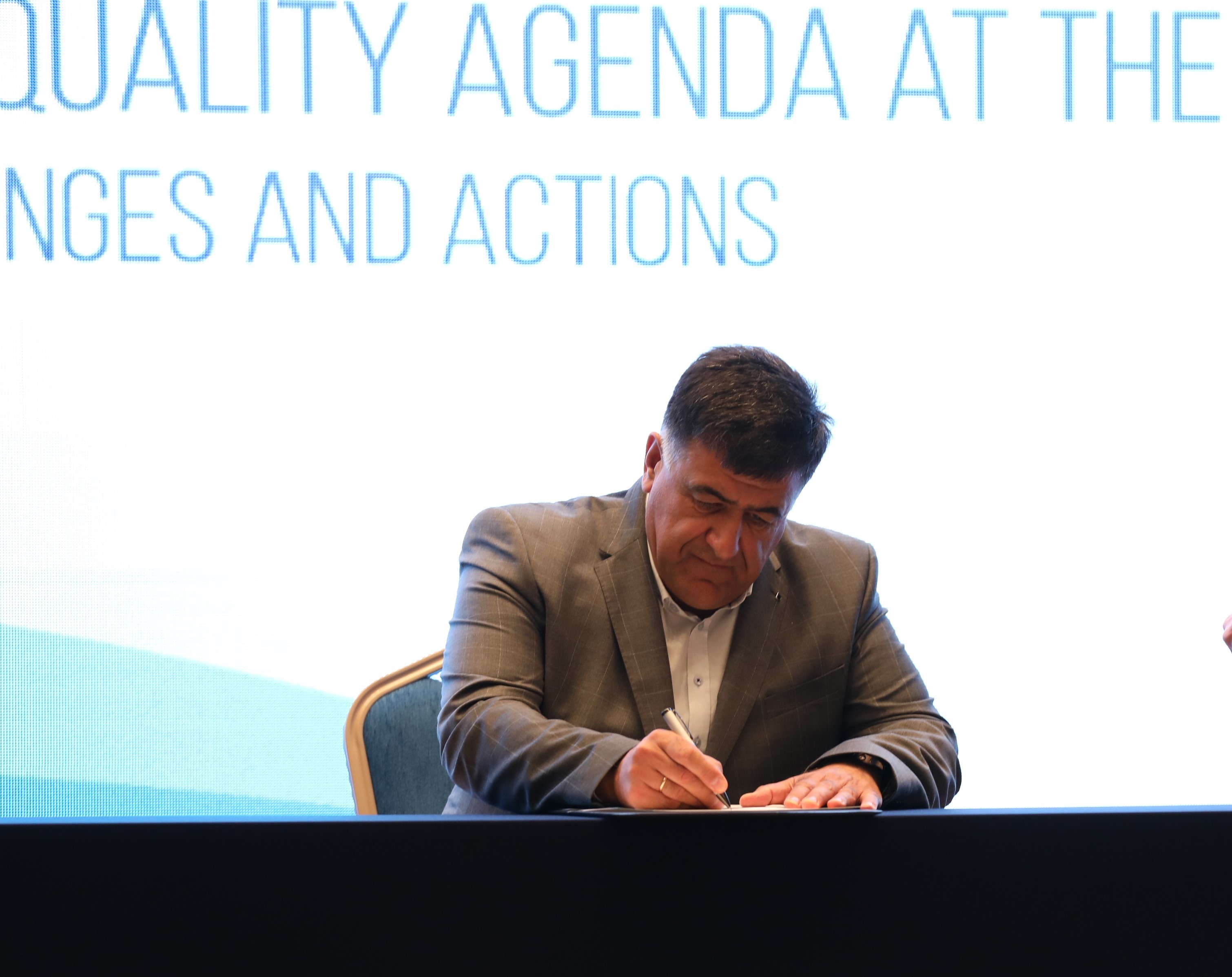 დოკუმენტზე ხელმოწერის ცერემონია, ეროვნული კონფერენციის - ,,გენდერული თანასწორობის დღის წესრიგი ადგილობრივ დონეზე: ძირითადი გამოწვევები და სამოქმედო ნაბიჯები” ფარგლებში გაიმართა, რომელიც საქართველოს ადგილობრივ თვითმმართველობათა ეროვნული ასოციაციის ორგანიზებით, გაეროს ქალთა ორგანიზაციისა და შვეიცარიის განვითარებისა და თანამშრომლობის სააგენტოს მხარდაჭერით მოეწყო.